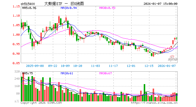 1月7日,大数据ETF(515400)跌0.31%,成交额8211.57万元。当日份额增加1900.00万份,最新份额为12.29亿份,近20个交易日份额增加5100.00万份。最新资产净值计算值为12.02亿元。
