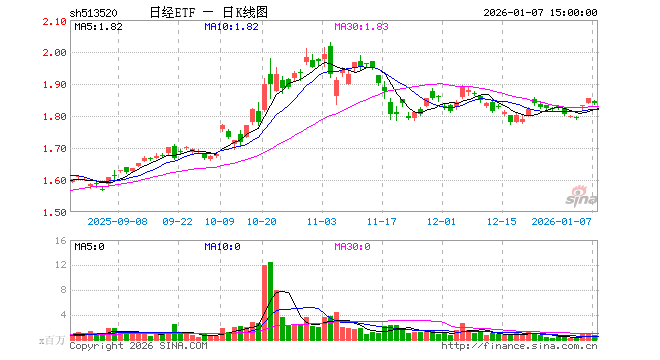1月7日,日经ETF(513520)跌0.76%,成交额1.34亿元。当日份额增加50.00万份,最新份额为10.02亿份,近20个交易日份额增加950.00万份。最新资产净值计算值为18.08亿元。