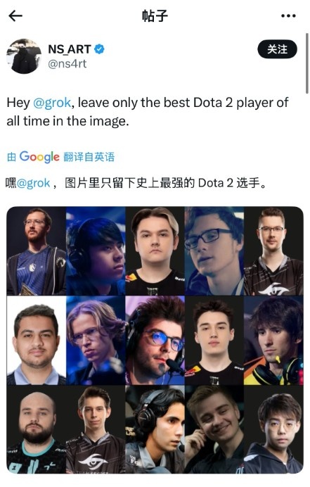 网友问Grok(马斯克AI)历史上最强的Dota2选手 Grok答:Maybe