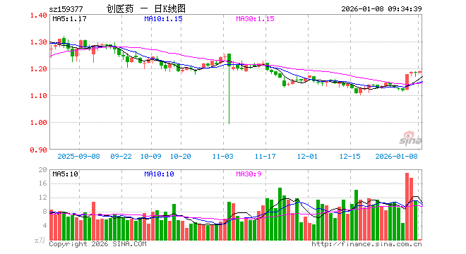 1月8日,创业板医药ETF国泰(159377)开盘涨0.00%,报1.183元。创业板医药ETF国泰(159377)重仓股方面,迈瑞医疗开盘涨0.19%,爱尔眼科跌0.09%,康龙化成涨0.26%,泰格医药涨1.08%,常山药业跌0.38%,爱美客跌0.23%,智飞生物涨0.00%,新产业涨0.00%,乐普医疗涨1.30%,沃森生物涨0.00%。