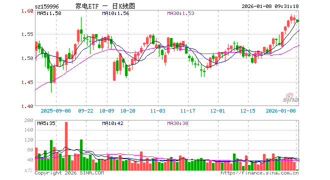 家电ETF(159996)业绩比较基准为中证全指家用电器指数收益率,管理人为国泰基金管理有限公司,基金经理为苗梦羽,成立(2020-02-27)以来回报为58.17%,近一个月回报为3.67%。