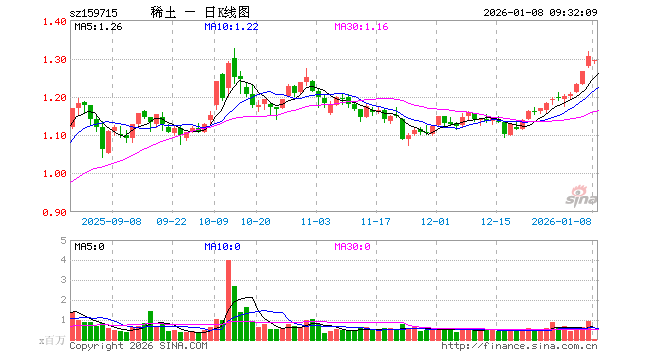 1月8日,稀土ETF易方达(159715)开盘跌1.15%,报1.291元。稀土ETF易方达(159715)重仓股方面,北方稀土开盘跌1.45%,卧龙电驱跌0.30%,领益智造涨0.00%,中国稀土跌0.99%,盛和资源跌1.34%,格林美跌2.89%,金风科技跌1.52%,包钢股份跌1.16%,厦门钨业跌1.90%,中国铝业跌2.49%。