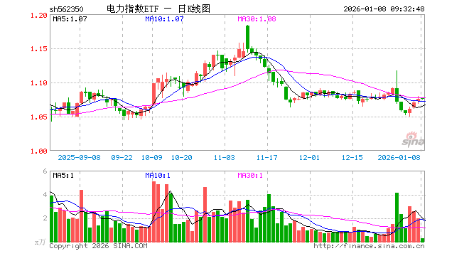 1月8日,电力指数ETF(562350)开盘涨0.19%,报1.077元。电力指数ETF(562350)重仓股方面,长江电力开盘涨0.00%,中国核电涨0.11%,三峡能源跌0.24%,国电电力涨0.20%,永泰能源涨1.20%,国投电力跌0.30%,华能国际涨0.00%,上海电力涨0.18%,中国广核涨0.00%,川投能源涨0.00%。