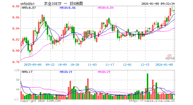1月8日,农业50ETF(516810)开盘涨0.00%,报0.872元。农业50ETF(516810)重仓股方面,牧原股份开盘涨0.94%,温氏股份涨0.00%,海大集团跌0.09%,藏格矿业跌0.70%,盐湖股份涨0.34%,新希望跌0.11%,亚钾国际跌0.32%,梅花生物涨0.00%,扬农化工跌0.22%,大北农涨0.25%。