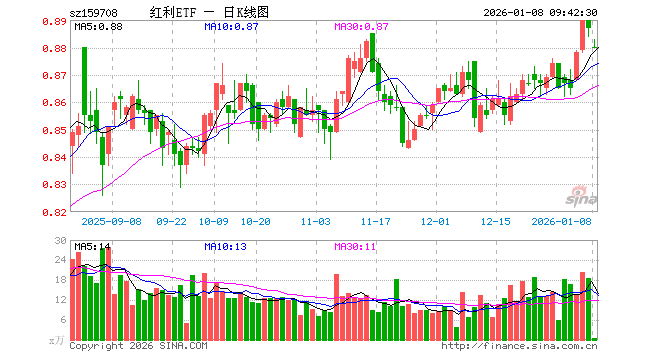 1月8日,红利ETF(159708)开盘跌0.79%,报0.880元。红利ETF(159708)重仓股方面,美的集团开盘涨0.00%,五粮液跌0.13%,格力电器跌0.02%,迈瑞医疗涨0.19%,海康威视跌0.20%,泸州老窖跌0.03%,徐工机械跌0.43%,分众传媒跌0.13%,潍柴动力跌0.34%,广发证券跌1.21%。