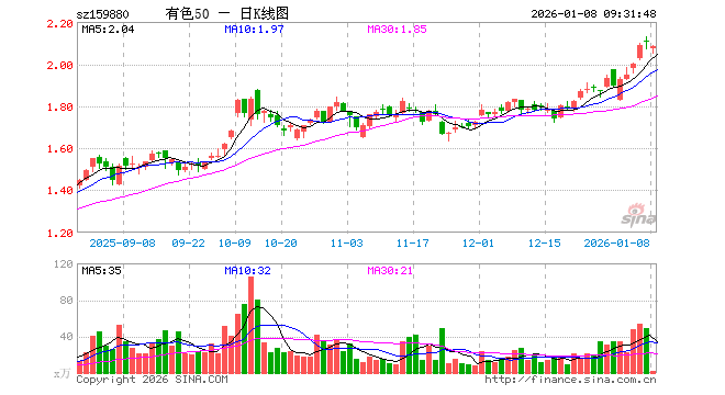 1月8日,有色ETF基金(159880)开盘跌1.52%,报2.073元。有色ETF基金(159880)重仓股方面,紫金矿业开盘跌1.42%,北方稀土跌1.45%,洛阳钼业跌1.91%,华友钴业跌0.74%,赣锋锂业涨0.32%,中国铝业跌2.49%,山东黄金跌0.22%,中金黄金跌0.49%,天齐锂业涨0.57%,兴业银锡跌0.47%。