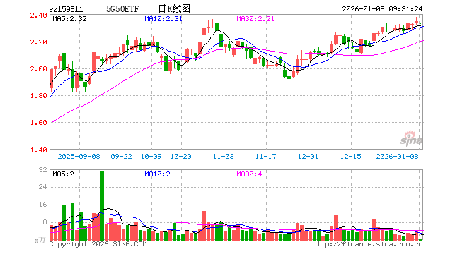 1月8日,5G50ETF(159811)开盘跌0.30%,报2.336元。5G50ETF(159811)重仓股方面,新易盛开盘跌1.16%,中际旭创跌1.37%,工业富联涨0.25%,胜宏科技跌0.07%,中兴通讯跌0.57%,兆易创新跌1.33%,豪威集团跌0.48%,中国电信涨0.00%,沪电股份跌0.48%,中国移动涨0.00%。