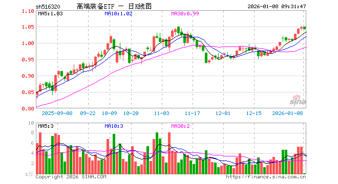 1月8日,高端装备ETF(516320)开盘涨0.10%,报1.049元。高端装备ETF(516320)重仓股方面,宁德时代开盘跌0.81%,阳光电源跌0.84%,汇川技术涨0.47%,三一重工跌0.05%,中国船舶涨0.00%,亿纬锂能跌0.99%,隆基绿能跌0.64%,徐工机械跌0.43%,国电南瑞涨0.00%,中国中车跌0.29%。