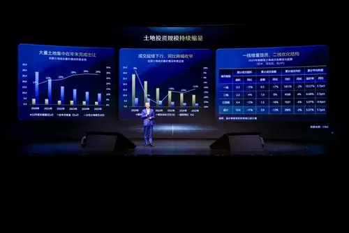 从销售百强企业拿地能级来看,2025年一线城市投资占比达到52%,二线城市占了43%,也就是95%都在一二线。投资权益前十企业的投资分布90%都聚焦在一二线。不过也有一些企业另辟蹊径,比如中海宏洋投资90%都在三四线,关键都取得了很好的成绩。