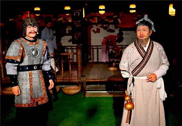 当日,在亳州市华佗百草园景区,游客在观看行浸式演艺剧《一代神医》,该演艺剧目通过“观、演、学”三位一体的创新模式,融合武术、舞蹈、杂技和话剧,配合声光电特效,将传统中医文化与现代科技深度融合。