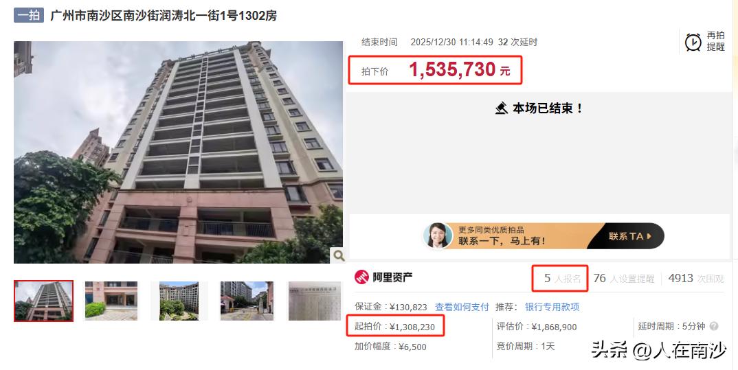 【你有出手吗?】南沙逸涛雅苑四期法拍房专场拍卖首战告捷!首批上拍的88套房源零流拍,总成交金额高达8041万元! 根据公开信息,平安银行推出首批共288套物业,在淘宝司法拍卖平台以单套形式分批推出,其中住宅268套,沿街商铺20套。部分单位单价最低只要5000元/平,凭借“一手房源”的属性和价格优势,吸引了不少购房者的关注,导致一段时间内现场去看盘的买家挤爆小区大门。 而这次法拍也终于打破了南沙一贯冷清底价成交的现状,比如其中两套174.01㎡热门大平层,起拍价分别为130万、131万,经三十余次激烈竞价后分别溢价17.4%、15.8%,以153.5万和152.4万成交。 不过需要注意的是,本次法拍零流拍并不是普通买家的功劳,而是背后有一个名为“广州南沙城市运营有限公司”的在捡便宜,拿下了多套房产。也就是说如果不是这家公司出手的话,估计应该会有不少单位流拍的。 目前不清楚这家公司会不会接下来继续接盘后续的法拍,但是这个公司估计会让不少等着二拍、变卖捡便宜的等等党伤心了。毕竟按照现在的价格看,如果后续有房源进入二拍或者变卖阶段的话,价格会更“笋”! 接下来这次法拍还有100多套,大家觉得这家神秘的公司能接这么多吗?