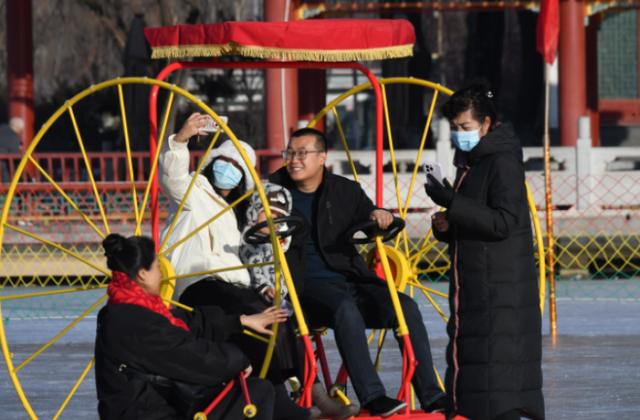 1月7日,天气晴好,西宁市人民公园人工湖冰面上,滑冰的群众正在尽情享受冬日的欢乐。入冬以来,西宁市全力助推冬季旅游项目发展,冬季参与冰雪娱乐的市民明显增多。人民公园的露天冰场因其便捷的地理位置,成为冬季西宁的热门打卡地,日均接待量达上千人次。