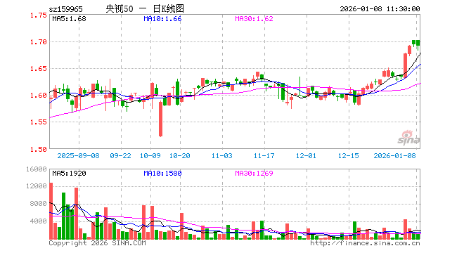 1月8日,截止午间收盘,央视50ETF(159965)跌0.18%,报1.691元,成交额20.73万元。央视50ETF(159965)重仓股方面,恒瑞医药截止午盘跌0.38%,伊利股份跌3.94%,工商银行跌0.90%,贵州茅台跌0.90%,中国平安跌2.42%,兴业银行跌1.37%,招商银行跌1.33%,兆易创新跌0.80%,海康威视涨0.20%,汇川技术跌0.15%。