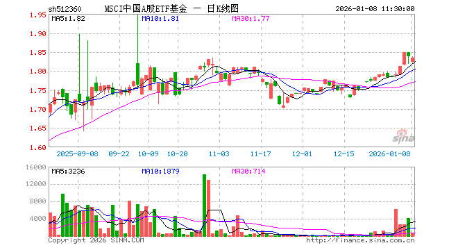 1月8日,截止午间收盘,MSCI中国A股ETF基金(512360)跌0.16%,报1.834元,成交额12.70万元。MSCI中国A股ETF基金(512360)重仓股方面,贵州茅台截止午盘跌0.90%,宁德时代跌0.12%,工业富联跌1.65%,招商银行跌1.33%,长江电力涨0.07%,寒武纪涨4.66%,紫金矿业跌0.54%,海光信息涨10.65%,中国平安跌2.42%,比亚迪跌0.83%。