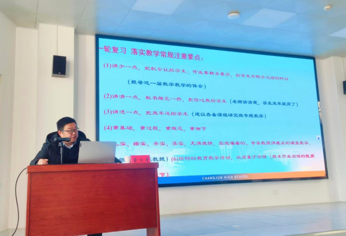 第三场报告来自湖南省长沙市长郡中学合作办学科主任董佳康的讲座《新时代背景下教学管理与复习备考经验分享》,董佳康主任立足新时代教育改革要求,结合长郡中学的办学积淀与实践经验,围绕教学管理提质、复习备考增效两大核心展开分享,深入剖析高三一轮复习和二轮复习。