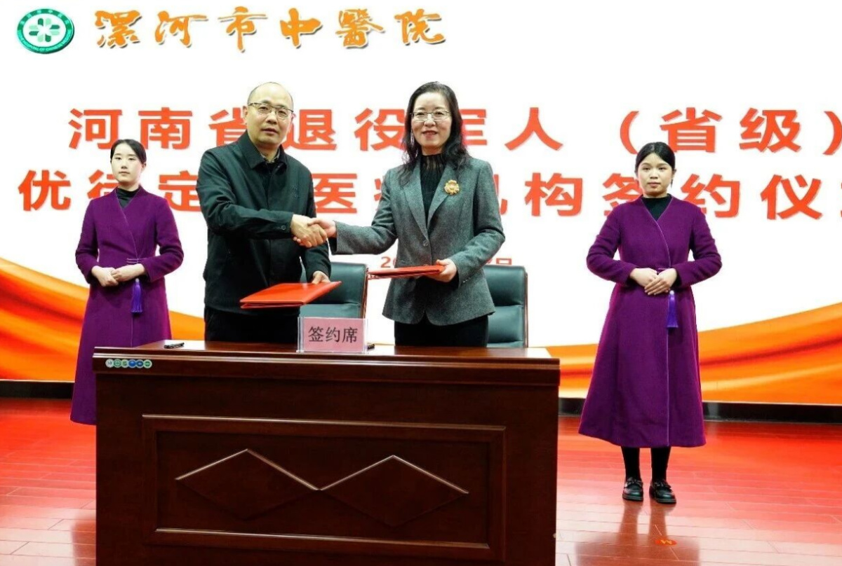 1月7日上午,河南省退役军人(省级)优待定点医疗机构签约仪式在漯河市中医院举行,漯河市中医院成功签约成为河南省退役军人(省级)优待定点医疗机构。河南省退役军人事务厅拥军优抚和褒扬纪念处处长刘克非、二级调研员尤东坡,漯河市卫生健康委员会党组副书记、副主任宋孟刚,漯河市中医院党委书记、院长杨轶,漯河市中医院副院长闫丙川及医院相关职能部门负责人出席仪式。仪式由漯河市退役军人事务局党组成员、副局长赵耀华主持。
