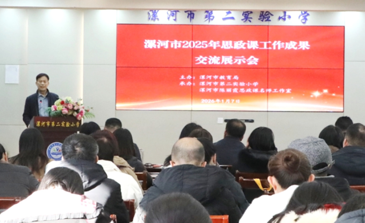 1月7日,漯河市2025年思政课工作成果交流展示会在漯河市第二实验小学召开。漯河市教育局党组书记、局长王海东,市教育局党组成员、副局长聂广桥,及市属各学校分管领导、各学段各学校思政课名师工作室负责人参加本次活动。