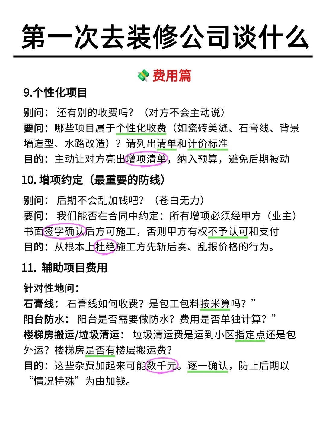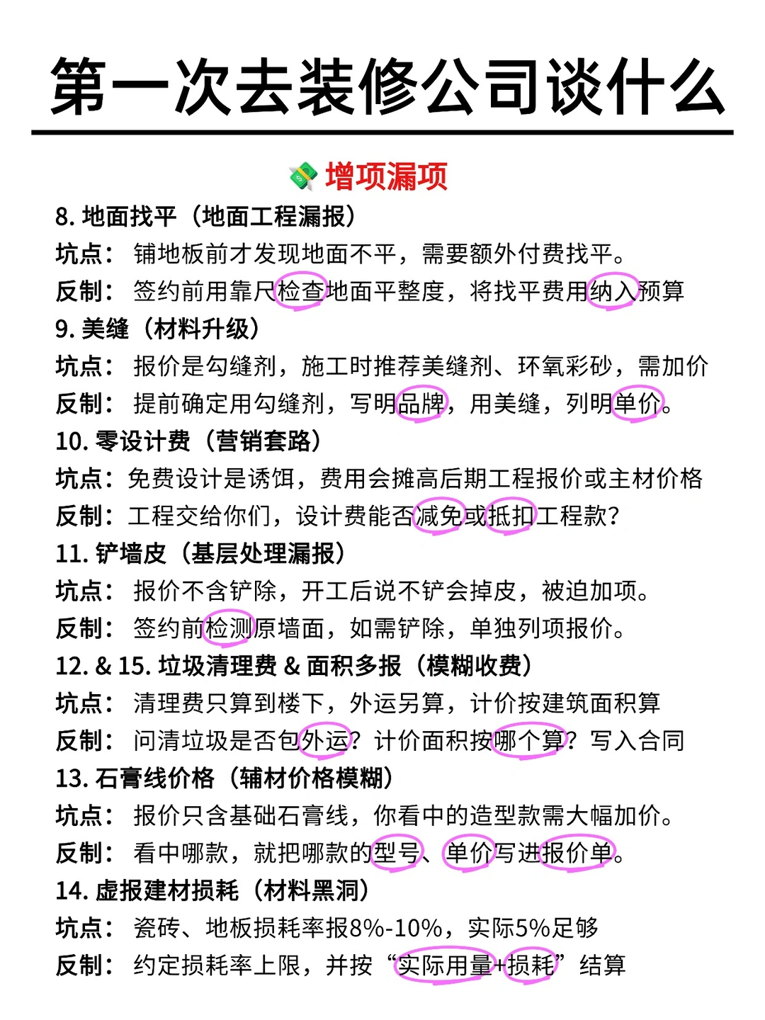 目的:提前锁定增项价格,杜绝施工中坐地起价