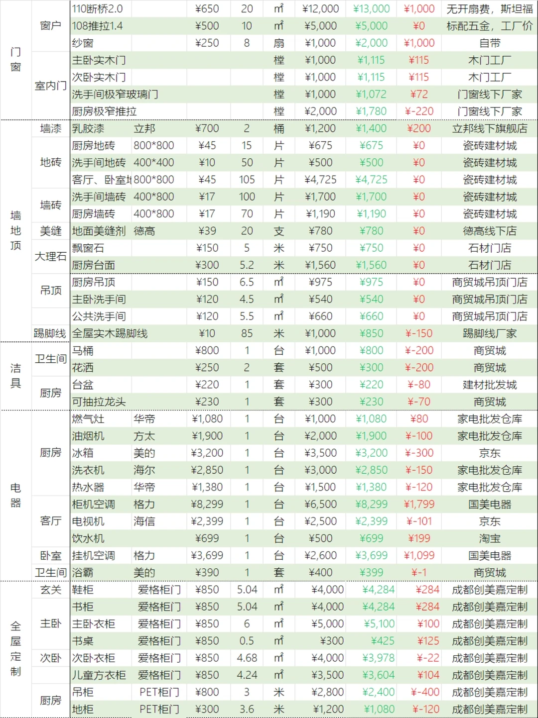 这份表格涵盖了装修从开始到结束的全过程记录,让你少花冤枉钱,少走冤枉路。🛣