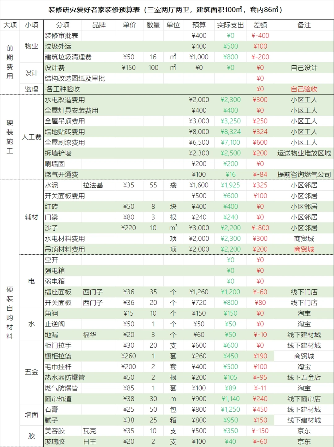 我掏心窝子整理了一份【装修预算全过程记录表】!📊