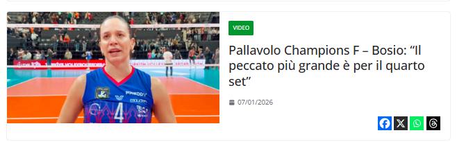 欧冠比赛日:没有李盈莹的米兰惜败没有博斯科维奇的伊萨奇巴希女排冠军联赛;赛后主力二传博西奥:"最大的问题出在第四局(22-25)"。 来源:电子排球杂志