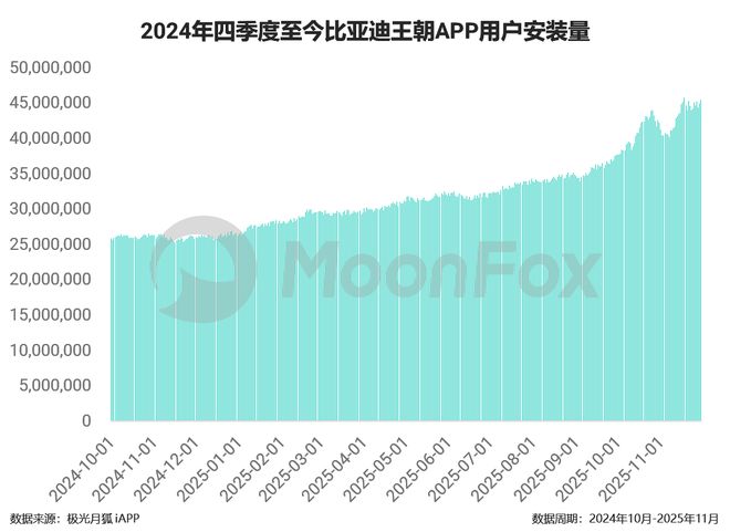 得益于车型的持续畅销,比亚迪王朝APP用户安装量稳健攀升。