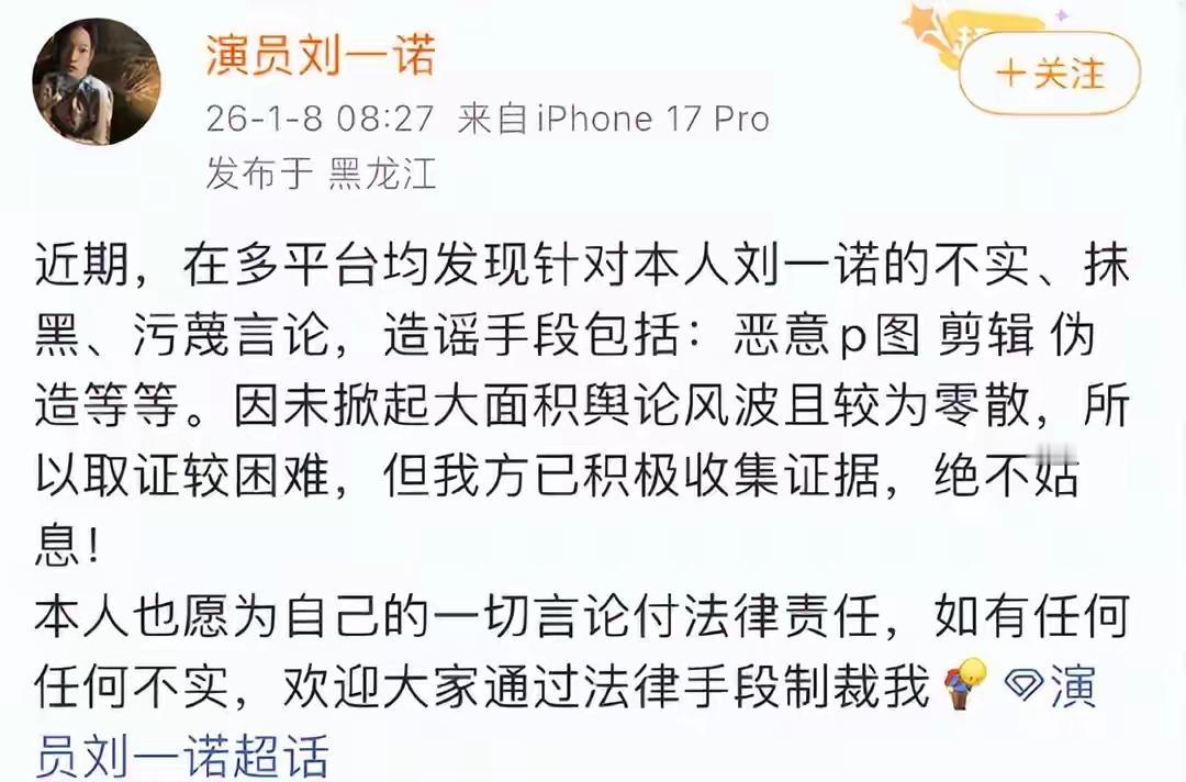 刚吃完檀健次和刘一诺的恋情瓜,转头就发现这事儿更绕了!19岁北电新人刘一诺,7号突然发文“在一起过,已分手”,承认和檀健次的过往,之前网友扒的同款地毯、衬衫总算有了说法,而檀健次发“三只单身狗”回应也算对上了。 可这边刚爽利认爱圈一波好感,那边就被扒出还没履行法院判决——之前她因捏造刘启赫“造黄谣”侵犯名誉权,法院判她道歉赔偿,结果到现在都没执行。如今又说“收集证据对付不实言论,愿负法律责任”,这前后反差也太大了吧? 咱中国人向来讲究“言行一致”,娱乐圈谈恋爱是私事,但法律判决可不是儿戏。既然敢说负法律责任,先把之前的判决履行了才实在啊! 你们觉得刘一诺这波“认爱坦诚”和“未履行判决”该怎么看?她即将播出的新剧会不会受影响?