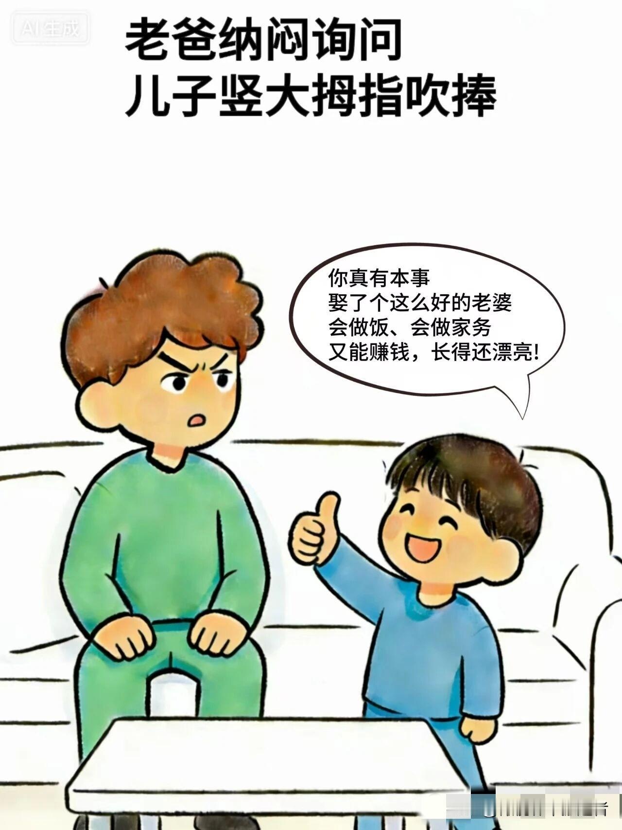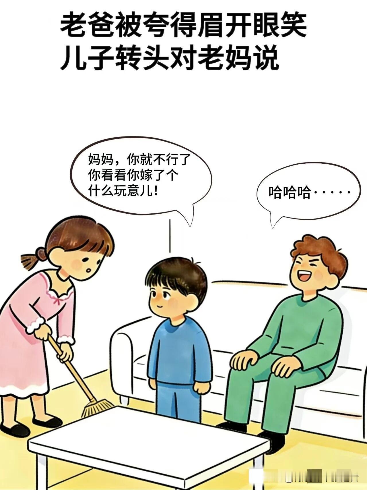 趣味漫画:儿子:爸你真厉害,我真佩服你,老爸:为什么,儿子:你娶了个这么好的老婆,爸爸:哈哈,儿子:我妈就不行,嫁了个啥玩意儿趣味小漫画
