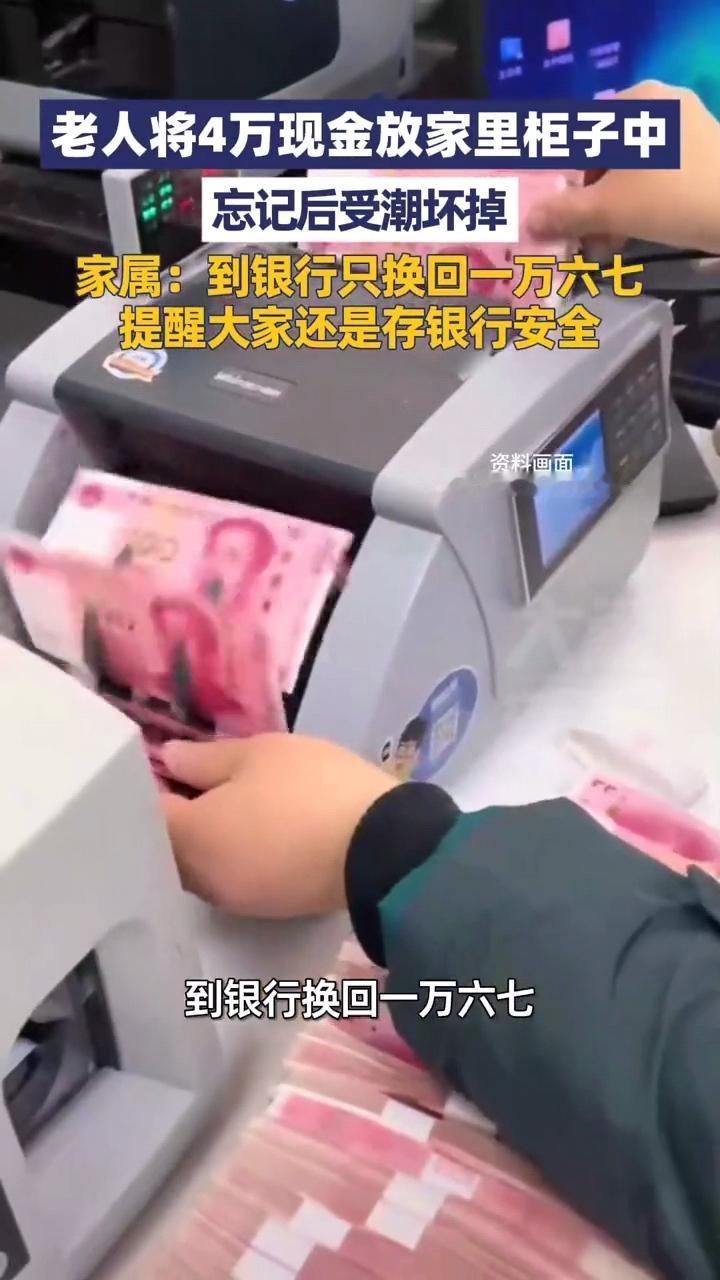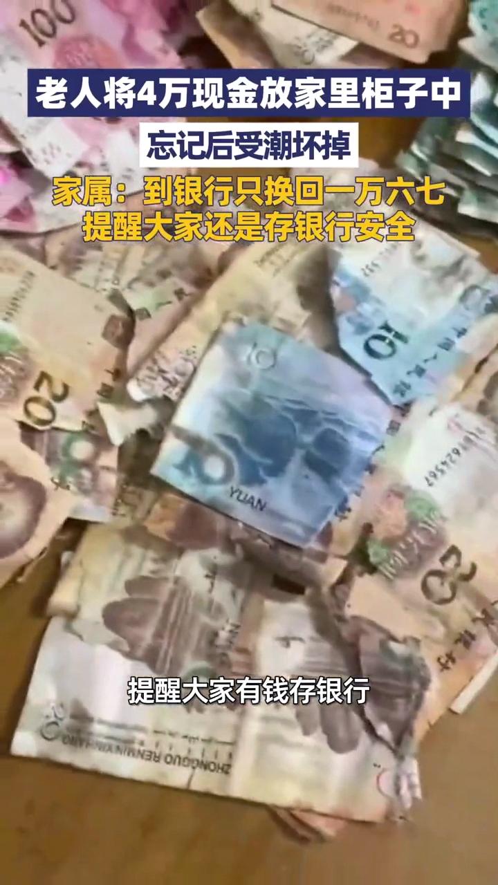 看着都心疼!江苏宿迁,一位老人把40000块钱放在柜子里,结果长时间没看,等她想起查看时发现全都受潮坏掉了,最后去银行处理,只换回一万六七,老人心疼的不得了。 钱不仅能生钱,钱其实也会“烂”。这种“烂”,不是形容词,而是物理意义上的发霉、腐朽。对于江苏宿迁的周女士一家来说,最近的经历就如同是一场因为常识盲区引发的“资产蒸发事故”。一堆红红绿绿的票子,从辛辛苦苦积攒的财富,变成了粘连在一起的“纸砖”,这中间的落差,哪怕作为旁观者,听着都觉得胸口发闷。 这件事最让人唏嘘的画面,发生在那家普通的银行网点里。柜台上摆着的不是整齐的钞票,而是一堆残损严重的纸币。这些纸币就像是被水浸泡过又风干的古书,脆弱得似乎稍微用力就会掉渣。 银行工作人员即使再小心翼翼地挑拣、清理,最终给出的数字依然残酷:原本的一大坨现金,最后只有不到一万六千多元能换回新钞。要知道,这里原本的“本金”可是足足四万元。眨眼之间,两万多块钱就这么凭空消失了,损耗率超过了50%。 这并不是理财产品的暴雷,而是源于一位老人多年的“柜底藏金”习惯。仔细看那些损毁的钞票,你会发现这位江苏老人的不容易。里面不仅有粉红的一百元大钞,还夹杂着绿色的五十元、棕色的二十元,甚至还有蓝色的十元纸币。 这一张张零碎的面额,无声地诉说着老人攒钱的艰辛,这显然不是一笔横财,而是日子里一点一滴、一分一厘从牙缝里省下来的。 对于很多上了年纪的人来说,看得见摸得着的现金才叫“钱”,存在卡里那只是个数字。柜子深处,似乎就是家里最安全的保险库,随用随拿,既不用看银行柜员的脸色,也不用去摆弄那些复杂的预约手续。 但这种心理上的“安全感”,却输给了物理上的“潮湿”。当老人因为找东西无意间再次打开那个被遗忘的角落时,所谓的“保险库”其实早已变成了细菌和霉菌的温床。南方气候本就湿润,木质柜子如果不通风,内部环境对于纸张来说简直是毁灭性的。 这四万元在黑暗中静静躺了许久,水汽慢慢渗入纸币纤维,霉斑开始蔓延。到了重见天日的时候,很多钞票已经不仅仅是受潮那么简单了,它们甚至长毛了、霉烂了,最后变成了一碰就碎的碎片,死死地粘连在一起,谁也分不开。 看着这堆面目全非的积蓄,老人的心那是真真的在滴血,那种心疼不仅是因为损失了金钱,更是对自己长久以来付出心血的否定。 这时候肯定有人会问,银行不是有残币兑换业务吗?怎么会折损这么厉害?这其实触及到了很多人关于现金认知的盲区。人民币的兑换并不是看你把残渣带去了多少,而是看每一张纸币剩余的完整度。 按照中国人民银行的标准,那是一把冷冰冰的尺子:如果这一张钱还能剩下四分之三,恭喜你,能全额换新;如果剩下的部分在二分之一到四分之三之间,那就只能打个对折,一百换五十; 在这个案例里,大量的钞票恰恰就处于那种“烂得太透”的状态。 霉菌的腐蚀加上长时间的粘连,导致很多票面一旦揭开就支离破碎,根本无法达到兑换红线。那一半多的损失,就是这么一点点被“扣”没的。周女士陪着母亲在银行看着工作人员拼凑,心里除了无奈还是无奈,眼睁睁看着辛苦钱作废,这堂“保管课”上得实在是太昂贵了。 这个事情现在回头看,其实并没有什么复杂的坏人作祟,甚至连小偷都没招来,纯粹就是自然规律对生活习惯的一次无情惩罚。老人当初觉得存银行麻烦,怕排队、怕预约、怕取用不便,这些顾虑确实存在。 但相比之下,家庭简易存放带来的风险是隐形且致命的。家里没有恒温恒湿的设备,也缺乏防霉防虫的手段,现金作为一种纸质印刷品,长期这种环境下,它的寿命比我们想象的要短得多。 周女士后来把这件事讲出来,也是想给所有做子女的和习惯存现金的老人提个醒。那四万块钱,曾经是老人手里沉甸甸的安全感,如今那一万六的残值,却是给这种过时理财习惯敲响的一记警钟。 钱确实是私人物品,想放哪是自由,但如果要对抗时间和环境的侵蚀,哪怕是再“不懂事”的大型银行,也比自家的木柜子靠谱得多了。