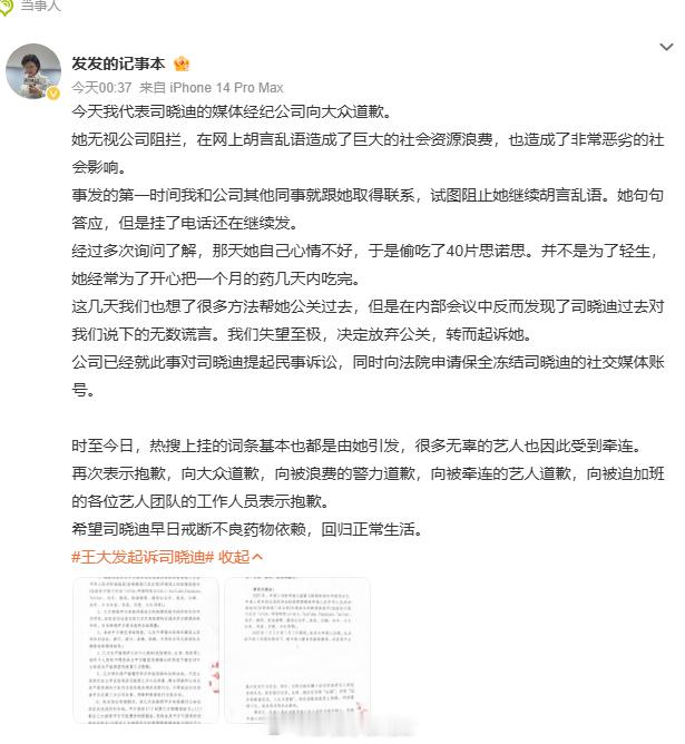王大发说司晓迪偷吃了40片思诺思王大发说司晓迪偷吃了40片安眠药 王大发起诉司晓