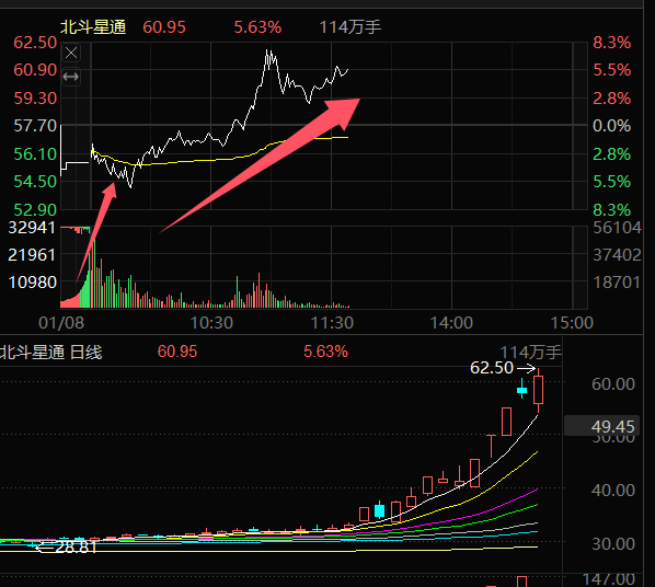 早盘-5低吸的北斗星通002151强势拉升红盘5个多点!要是今天进的目前吃肉10