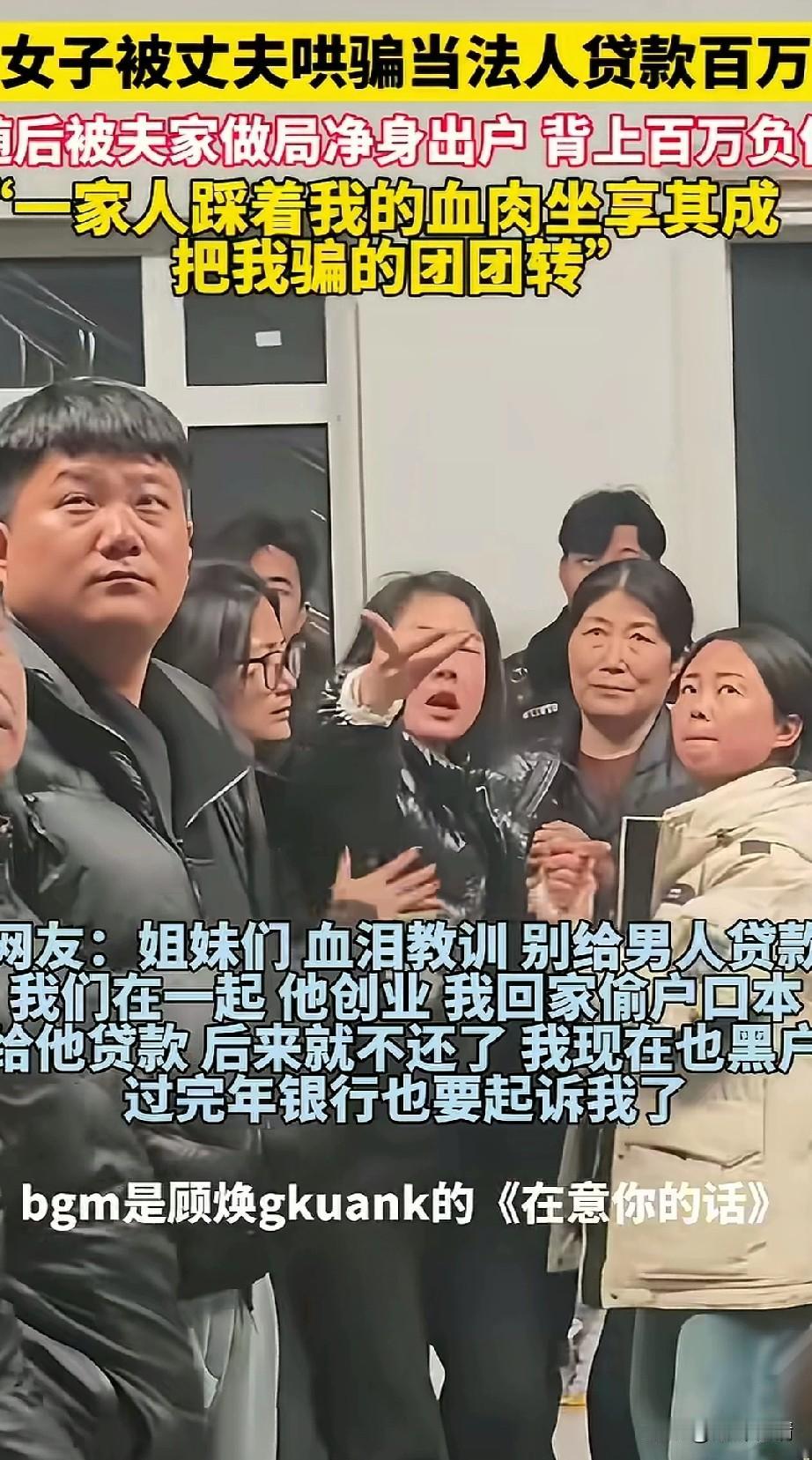 这样的婚姻让人寒心, 女子和老公结婚很久了, 两人还生了孩子, 老公在外面创业挣钱, 没想到现在生意这么难干, 很快就欠了一屁股债, 他家的企业也不堪重负, 于是这个老公就心生一计, 直接骗自己的妻子担任法人, 并且还利用妻子的名义贷款百万, 随后她的老公就做局和他离了婚, 然后让她背负了百万负债, 也不管她的死活, 这样的夫妻真的很悲哀, 女子也是活不下去, 天天拿着喇叭去自己的前夫家闹, 还把这事报给了媒体, 媒体直接将这事做成了新闻, 这事想不火都难, 看着她的年龄也不小, 想必他的儿子也不小, 但是在亲友的陪同下去往了男方家, 周围都是记者, 女子声泪控诉前夫的甩锅, 直言一家人踩着我的血肉,坐享其成, 把我骗的团团转, 她的儿子也没有出来看她的母亲, 这一幕真的很让人寒心, 难怪网友说是姐妹们, 这可是血泪的教训, 我回家偷偷拿户口本和他结的婚, 他创业失败了, 居然还让我贷款百万, 如今他不还,还把我净身出户, 让我成为了银行的黑户, 现在银行要起诉我, 这还真是当代陈世美, 长点心吧,结婚的对象真的很重要! 门当户对真的一点没错! 大家对于这样的婚姻怎么看? 婚姻与家庭 婚姻的苦恼分享
