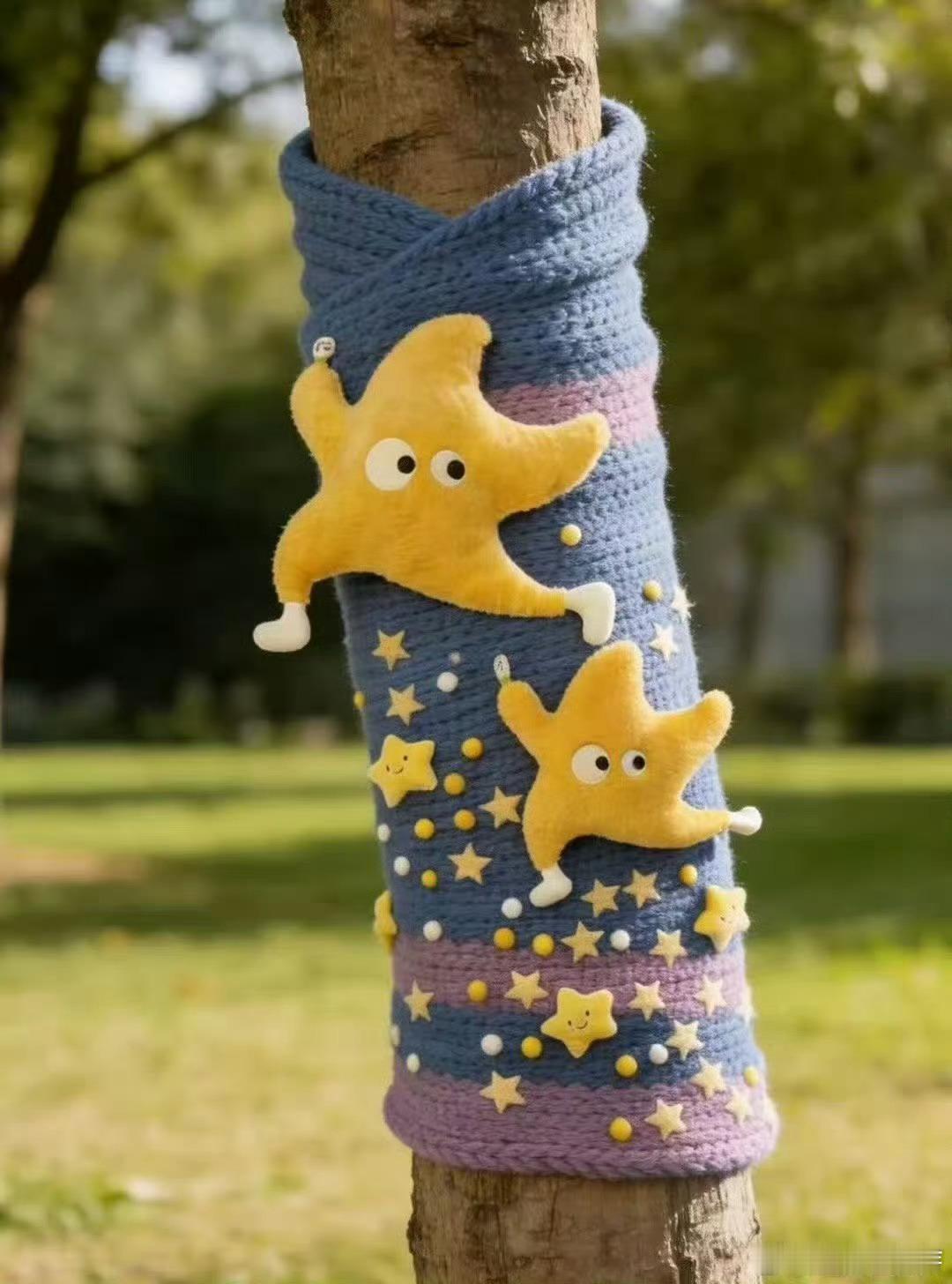 喻言你也想给大树织毛衣吗给大树织毛衣的创意被玩出花了。喻言关注这活动,看着网友的可爱成果,心里大概正琢磨着,要给大树来个独特的编织造型~😆