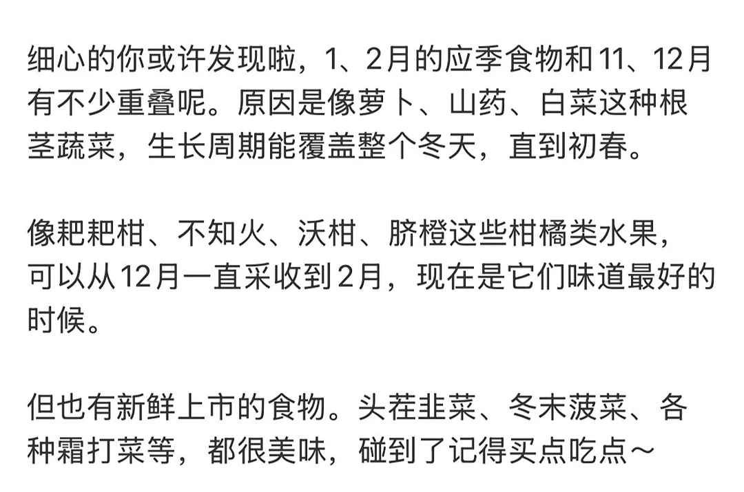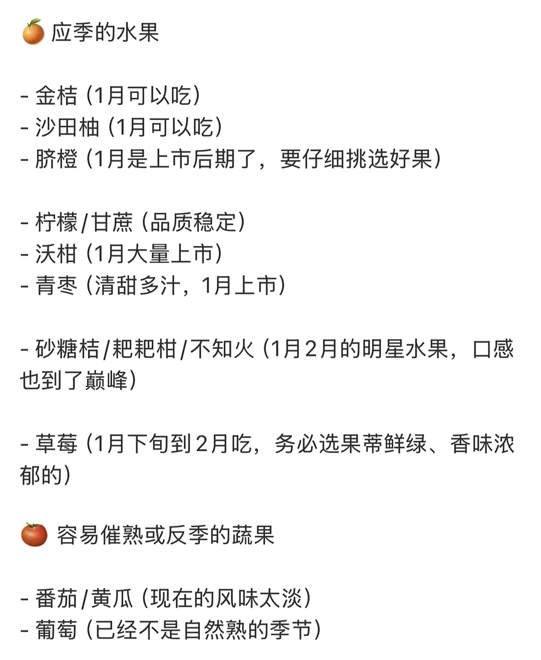 应季的蔬菜 应季的水果 应季的肉类 应季的干货 最近容易催熟/反季的蔬果等 祝你在冬末初春吃饭愉快~