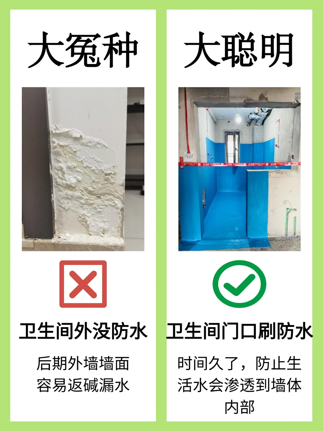 说句大实话: 防水省1k,返工多花10k!尤其老破小和二手房,砸砖重做还要赔邻居损失‼️