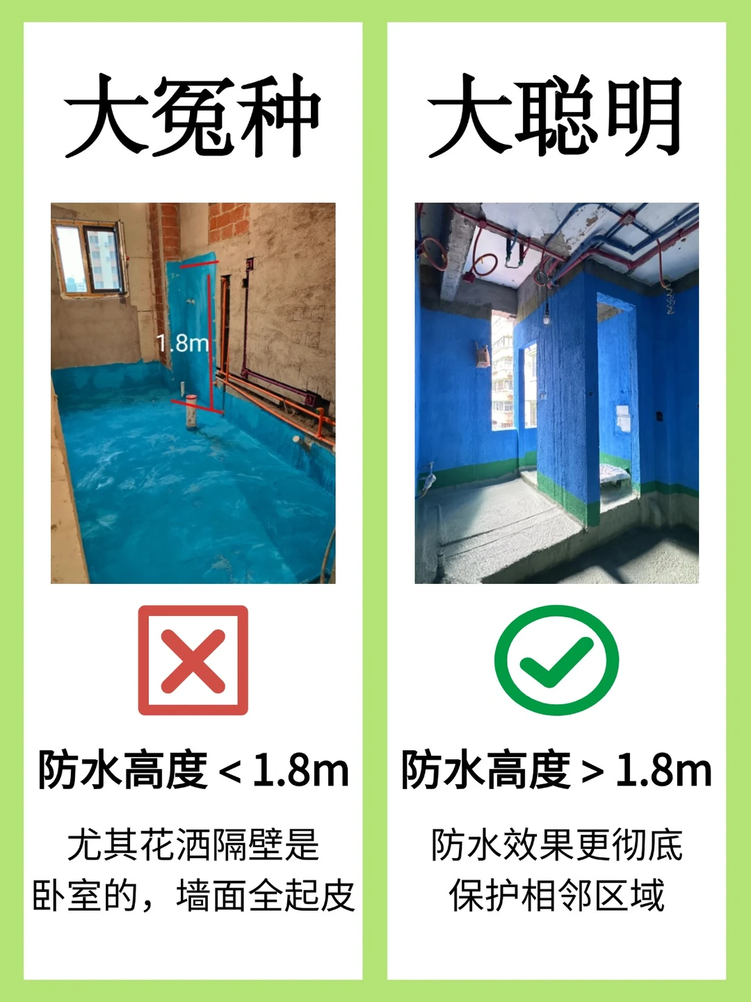 ✅ 墙面防水刷到1.8米:防水效果更彻底,保护相邻区域