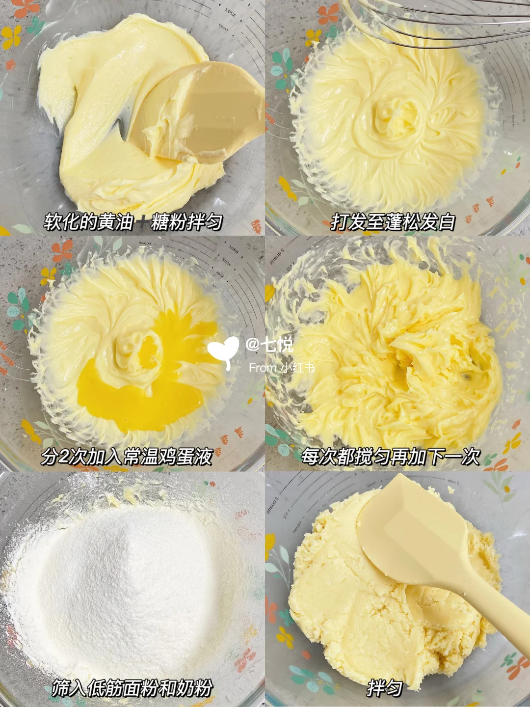 1️⃣软化的黄油+糖粉拌匀,打发至蓬松发白
