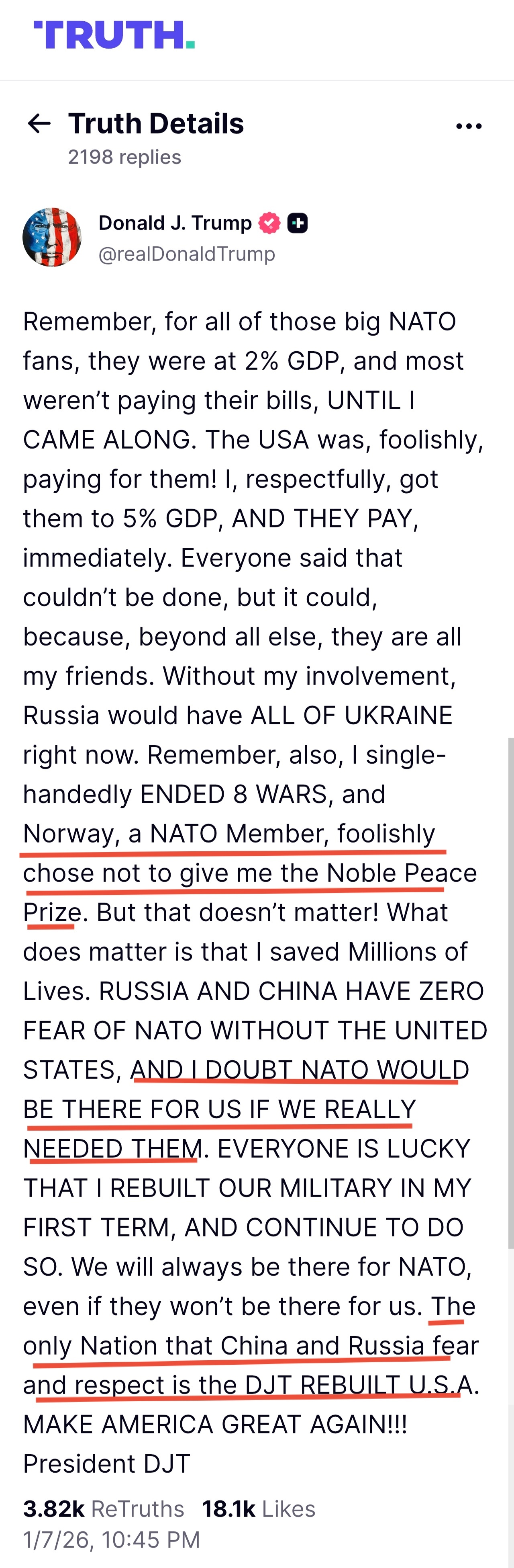 美国政府装都不装了 【丹麦🇩🇰能坚持几分钟投降呢?】特朗普毫不掩饰对于丹麦格陵兰岛的渴望,挥舞金钱大棒甚至不惜动用武力,以及对于北约各国拉胯无用无能拖后腿的厌恶。美国对格陵兰岛志在必得,北约乌合之众将会土崩瓦解,老欧洲会像死狗一样被抛弃【世界格局正在经历剧烈变化】。鲁比奥称美国计划购买格陵兰岛特朗普考虑动用美军获取格陵兰岛