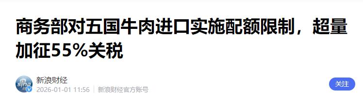 美国着急,中国出手了! 这一下,可是打到了关键地方。咱们国家决定,对从巴西、澳大利亚、美国这些地方进口的牛肉,实行配额管理。什么意思呢?就是规定一个进口的数量,超过了这个数量,再加征高额的关税。 中国是全球最大的牛肉进口国,不管是巴西、澳大利亚还是美国,他们的牛肉产业都高度依赖中国市场。 就说巴西,2025年对华牛肉出口占其总出口量的48%,出口额更是接近一半,中国可以说是巴西牛肉的“第一金主”。 美国虽然近几年对华出口量不算顶尖,2025年前11个月才出口了5万多吨,但中国市场的增长潜力摆在那,他们本来还想着趁机扩大份额,结果咱们的配额政策一出来,直接把这条路的上限给划死了。 咱们这次的政策可不是临时起意,而是有明确的时间范围和具体标准的。根据商务部的公告,从2026年1月1日起,对巴西、澳大利亚、美国等主要牛肉出口国实施配额管理,有效期三年,直到2028年底。 具体的配额分配也很有讲究,巴西最多,能分到110万吨,澳大利亚20.5万吨,美国则只有16.4万吨,是这几个主要国家里最少的。关键是超过配额的部分,要加征55%的高额关税。 这意味着什么?一旦超出配额,进口牛肉的成本会直接飙升,进口商根本没利润空间,相当于变相把超量的进口牛肉挡在了门外。 可能有朋友会疑惑,咱们为什么要在这个时候出台这样的政策?核心原因就一句话:保护国内的牛肉产业,把饭碗端在自己手里。 大家可能没注意到,近几年进口牛肉的数量激增,已经给国内的养牛户和相关企业带来了不小的压力。 一方面,进口牛肉的大量涌入让国内牛肉价格持续走低,很多散户养牛的利润被压得特别薄,甚至出现了亏损;另一方面,国内牛肉需求增长放缓,供应却越来越多,形成了供过于求的局面,长此以往,国内的牛肉产业很可能会被冲垮。 商务部早就做过调查,确认进口激增已经对国内产业造成了实质性损害,这次的配额管理其实是合规的“保障措施”,目的就是为了给国内产业喘口气、谋发展的机会。 看那几个出口国的反应,就知道这招有多精准了。美国的肉类企业首先坐不住了,要知道他们之前为了打开中国市场花了不少功夫,现在配额就这么点,想扩大出口根本不可能。 澳大利亚的反应更激烈,他们的肉类行业协会直接警告,说这个政策可能让他们对华牛肉出口减少三分之一,损失超过10亿澳元。 澳大利亚贸易部长还跳出来喊“失望”,抱怨咱们不尊重自贸协定伙伴身份,但他们压根没提,之前咱们为了保护国内产业,已经暂停了中澳自贸协定中涉及牛肉的部分条款,在产业安全面前,所谓的协定优惠必须为保障措施让步。 相比之下,巴西虽然也受影响,2025年对华出口量远超110万吨的配额,但好歹配额是最多的,暂时还能接受,只是之前的扩张计划肯定要泡汤了。 其实大家可以发现,咱们的政策不是“一刀切”的封闭,而是有进有退的精准调控。配额不是一成不变的,而是会逐年小幅增加,比如美国2026年配额16.4万吨,2027年就会涨到16.8万吨,2028年17.1万吨,既给了国内产业发展的时间,也没有完全断绝和其他国家的贸易往来。 而且咱们这么做,也是在推动国内牛肉产业的升级。现在国内的牛肉产业正在从“数量追求”转向“品质提升”,中央一号文件也把牛羊产业提质增效纳入了乡村振兴的重点任务,目标是到2030年让牛肉产量突破800万吨。 目前国内牛肉自给率大概在60%左右,随着规模化养殖比例的提升和育种技术的突破,未来自给率还会进一步提高,到时候咱们不仅能吃上放心的国产牛肉,还能在国际市场上拥有更多话语权。 美国和澳大利亚之所以着急,本质上是怕失去中国这个巨大的市场。他们的牛肉产业高度依赖出口,而中国是全球最有潜力的消费市场,丢了中国市场,他们的产能根本消化不了。 就像澳大利亚,之前还想着靠和欧盟签自贸协定来弥补损失,但欧盟市场早就饱和了,想替代中国的地位几乎不可能。而咱们中国,现在要做的就是牢牢掌握贸易主动权,不再被外部市场的波动牵着鼻子走。 这次的牛肉配额政策,既是对国内产业的保护,也是中国在国际贸易中维护自身利益的有力举措。 过去咱们可能需要大量进口来满足需求,但现在随着国内产业的发展,我们有能力也有必要为本土产业创造更好的发展环境。 毕竟,粮食安全、产业安全从来都不是小事,只有把这些关键产业牢牢抓在自己手里,才能在复杂的国际环境中保持主动。 美国企业的着急,恰恰说明他们看懂了这一点,也知道中国市场的重要性。而对我们来说,这只是开始,未来在更多领域,我们都会用合理合法的方式维护自身权益,真正把饭碗端稳、端牢。