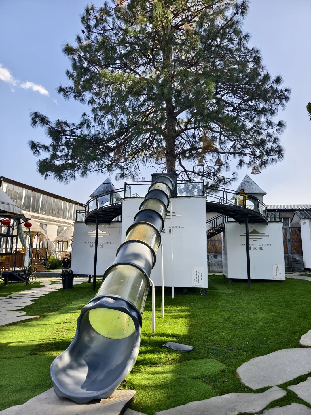 下午前往云禾壹海景庄园,就在苍山脚下。这是一个背靠苍山、俯瞰洱海的亲子空间。孩子们可在宽阔草坪奔跑,玩滑梯、秋千,家长在咖啡厅休憩观景。晚餐可以在设计成玻璃马车的漂亮房子里享用,亲测价格、味道都很过关