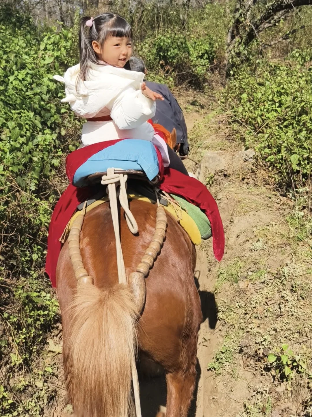 上午苍山骑马,时长一小时左右。起点通常在天龙八部影视城,马夫会为孩子选择温驯的马匹,牵引沿小路上山,一路光影,景美又省妈。到达中和寺坐索道下山,别有一番风味