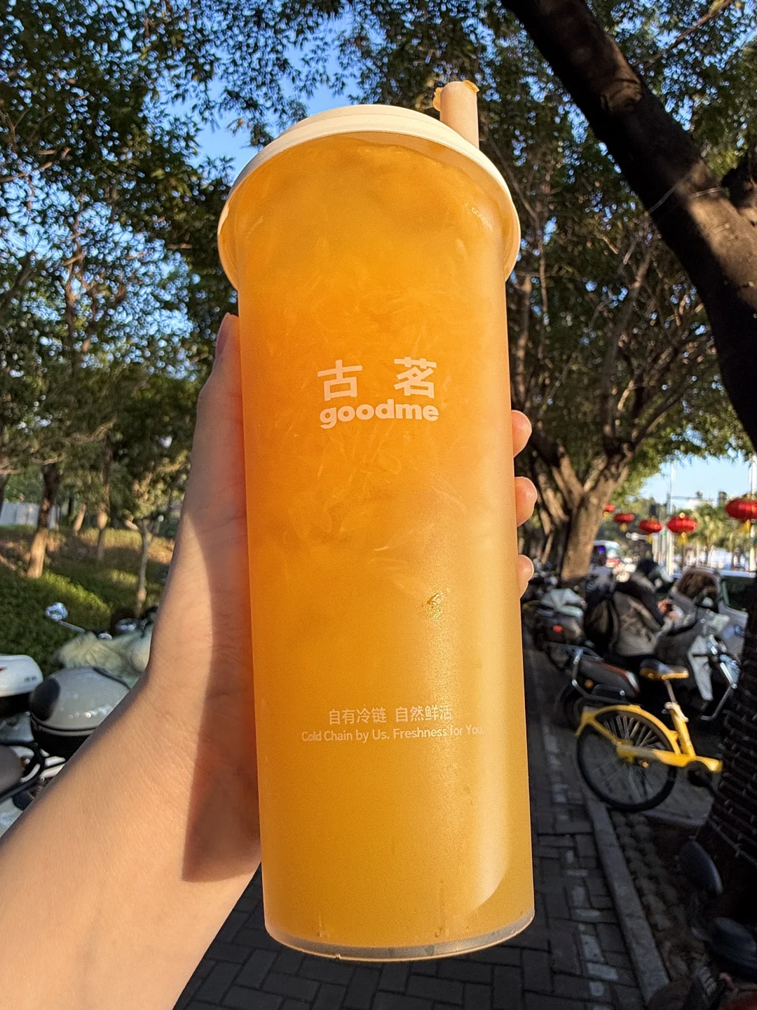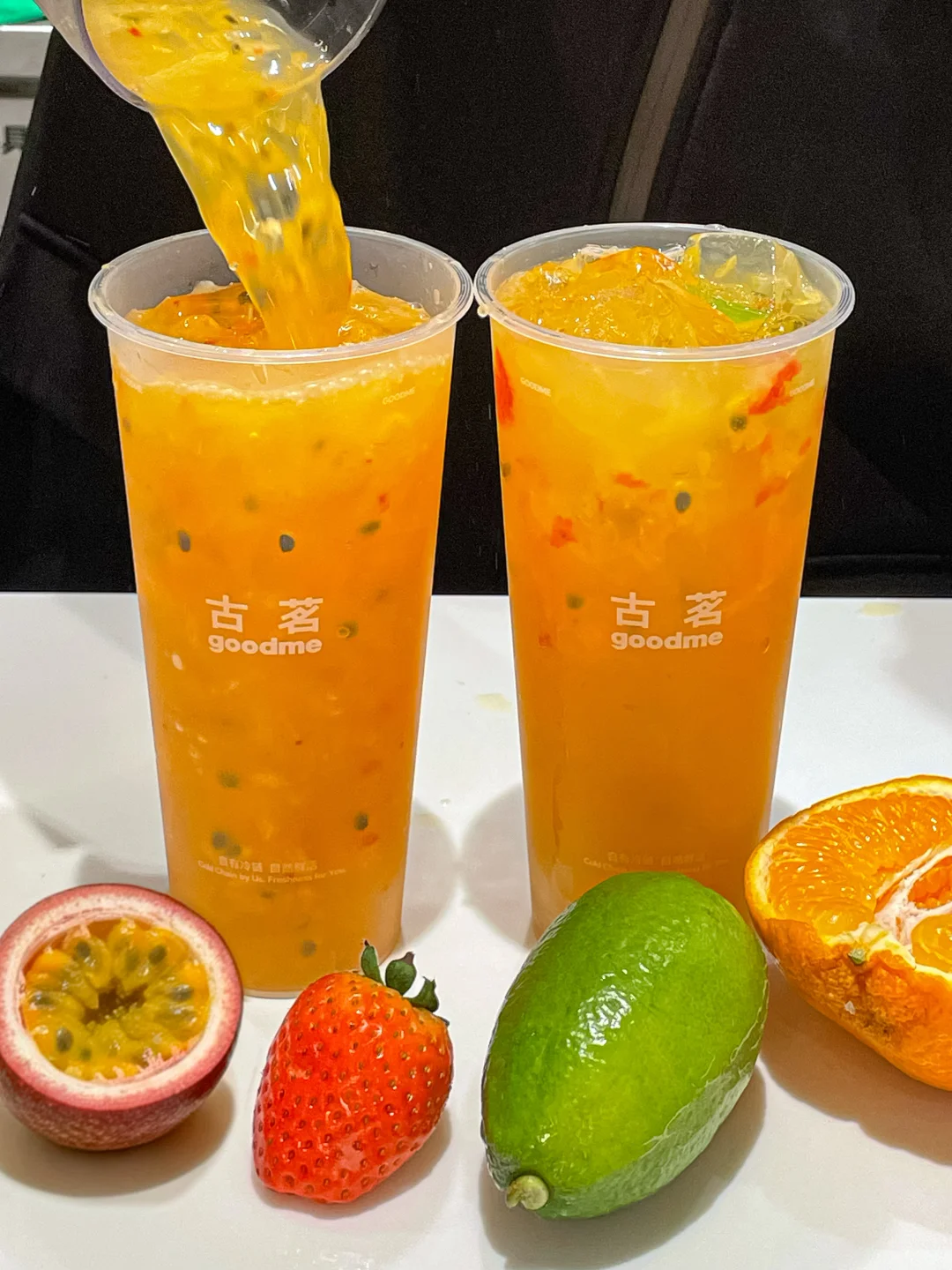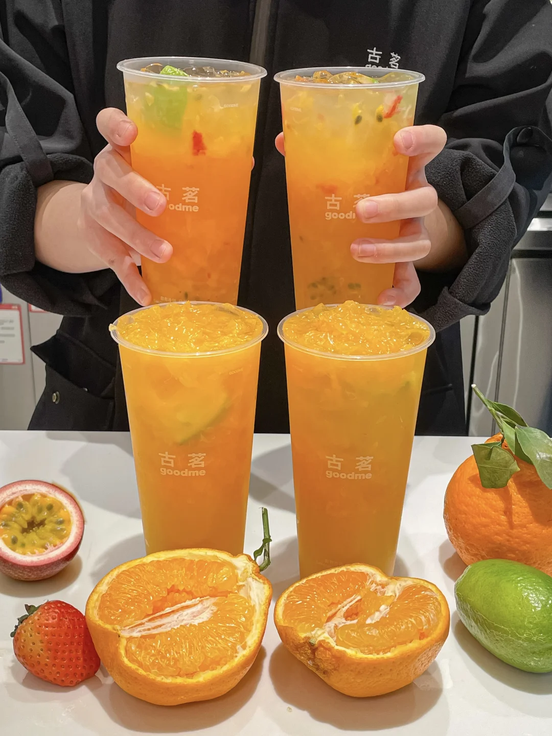 据说是店员的噩梦新品哈哈哈哈 古茗你真的把耙耙柑脑袋养的很好。。 太多果肉了…吸管都吸不动了!! - ✔️手剥粒粒大橘 果肉多到离谱。每一口都能喝到新鲜大块耙耙柑果肉!!真诚建议官方配个勺,直接挖着吃更爽!还能嚼到Q弹的佛手柑冻冻!!喝完底下还剩好多果肉🍊 ✔️爆汁鲜果杯 一次性能吃到耙耙柑、草莓、香水柠檬、百香果四种水果!! 口感超级丰富!酸甜感平衡得刚刚好~ 冬天配火锅你就喝吧!!