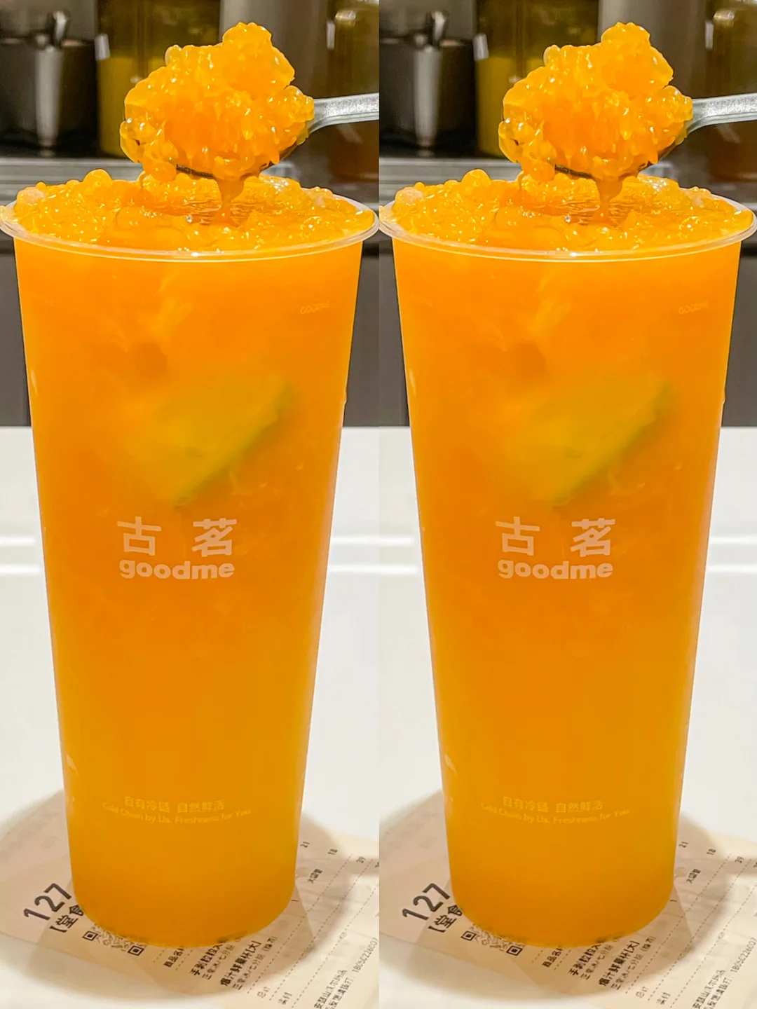 建议古茗配个勺吧…吸管都被果肉堵了