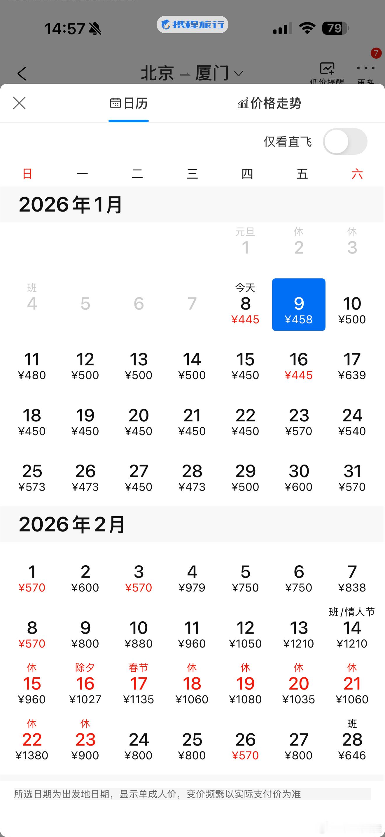 机票价格大跳水真的啊!北京到福州厦门的机票单程才500左右,看来下周和下下周是适