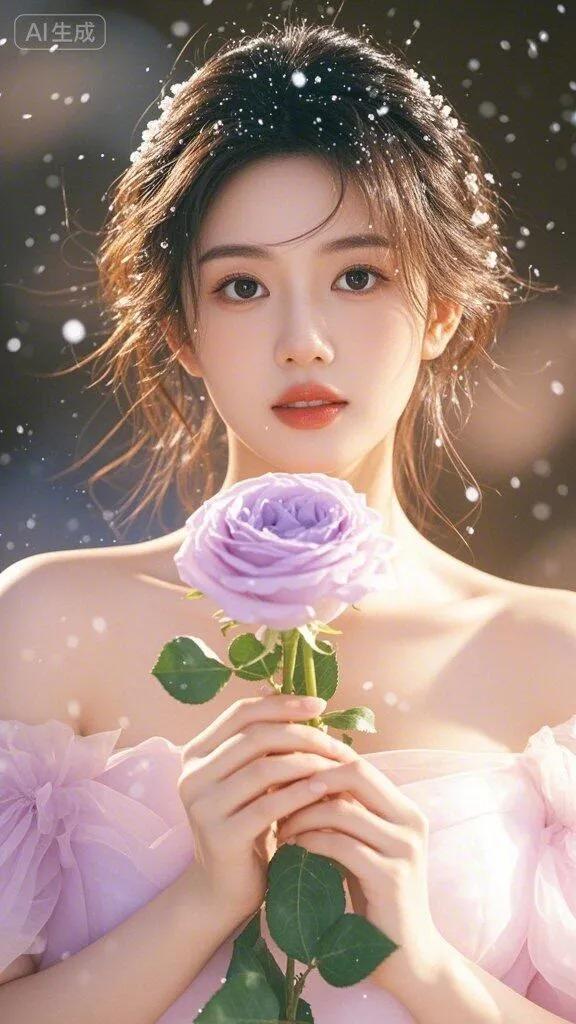 黑发红唇,优雅动人,黑纱裙摆,浪漫迷人。