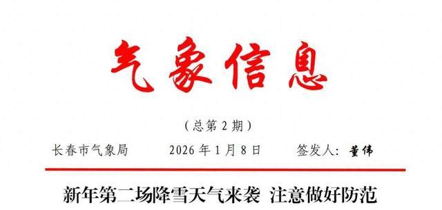 预计降雪于1月9日15时前后自西南向东北移入我市,1月10日8时前后全市主体降雪趋于结束。全市平均降雪量1~3毫米,公主岭东南部、双阳部分地方可达3~5毫米,长春市区降雪量2毫米左右。新增积雪深度一般为1~3厘米,公主岭东南部、双阳可达5厘米左右。