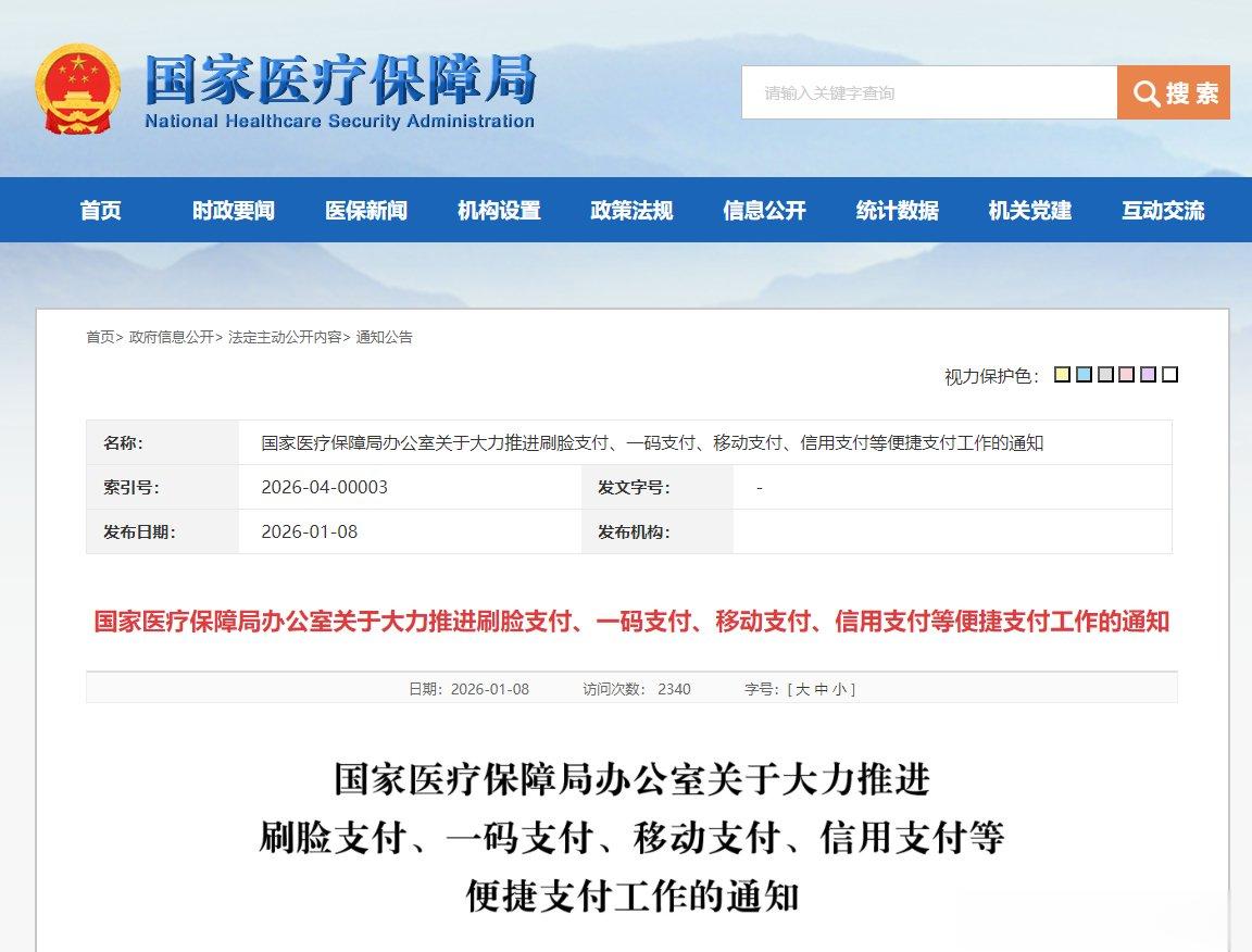 [国家医保局:#力争3年时间让看病缴费更便捷#]1月8日,国家医疗保障局办公室印发《关于大力推进刷脸支付、一码支付、移动支付、信用支付等便捷支付工作的通知》。明确加快推进刷脸支付、一码支付、移动支付、信用支付在各类医疗场景落地,力争用3年左右时间全面建成安全、便捷、高效、成熟的医保便捷支付体系,应用场景覆盖门急诊、住院。