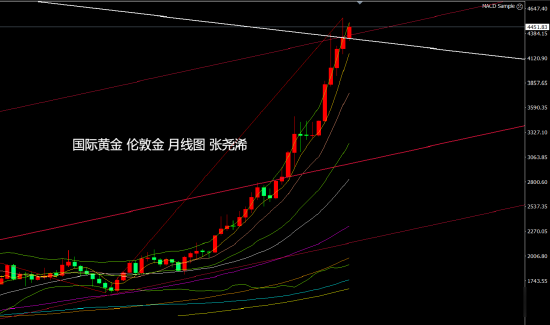 反之,如本月再度收取倒垂至趋势线之内,则需留意后市有再度展开较大回调,去回踩4000-3900美元区域或更低位置的风险;
