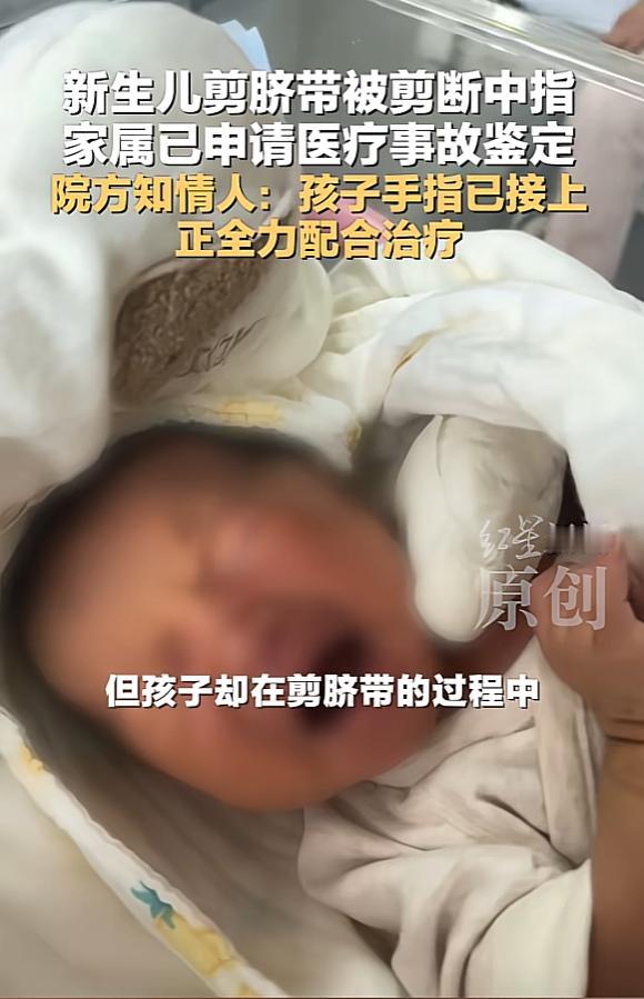 “严查到底!”12月25日,江苏淮安,一新生儿在医院剖宫产出生后,竟被助产士用脐带剪把手指剪断!面对如此大的事故,助产士给出的解释是孩子的手突然乱动,可孩子爸爸无法接受,认为这是医院犯下的低级错误!网友:不要想推卸责任! 这本该是为人父母最期盼的一天,却因为一把手术剪,变成了一场难以醒来的噩梦。在江苏盱眙县人民医院的产房外,盛先生怎么也没想到,妻子顺利进行的剖宫产手术,迎接新生命降临的同时,竟伴随着孩子肢体残缺的惊魂消息。 医生当时的描述显得有些轻描淡写,声称助产士在操作过程中“不小心伤到了”孩子的中指。这种含糊其辞的说法让盛先生起初以为只是蹭破了皮,然而当他真正看到还在襁褓中的儿子时,眼前的景象让他如坠冰窟:新生儿左手的中指并没有简单的皮外伤,而是几乎完全离断,仅仅连着一点皮肉。 这一极其荒谬的失误究竟是如何发生的?涉事助产士给出的解释将责任推向了初生的婴儿声称是因为孩子的手“突然乱动”,导致了剪刀偏离。这种辩解在盛先生听来不仅苍白,更像是逃避责任的托词。剪脐带乃产科基础且常规的操作流程,专业人员理当具备预判并控制各类突发状况的能力。 将这般惨痛后果归咎于新生儿本能反应,实难平息家属的愤懑。更有知情人士透露,由于事发区域恰好处于监控探头的死角,这“夺指”的一瞬间究竟发生了什么,如今已无法通过影像还原,双方只能就这一残酷的结果进行对峙。 为了保住孩子的手指,县人民医院立即将孩子转诊至省内的专科医院进行断指再植手术。虽然当天下午的手术宣告成功,孩子也已于12月31日出院回家,但这几天的经历对这个家庭来说无异于一种煎熬。 术后的恢复期并没有那么轻松,由于年幼,孩子无法表达痛楚,只能在夜间频繁疼醒、哭闹不止,抬手都显得异常费力。看着刚出生的孩子就要遭受断指再植的剧痛,作为父亲的盛先生痛心不已,他始终无法理解:这么大一家公立医院,为何会犯下如此不可原谅的“低级错误”? 随着舆论的持续发酵,这一离谱的医疗事件引发了监管部门的介入。1月5日晚,盱眙县卫生健康委员会正式发布通报,定性此次事故为“助产士操作严重失误”,并明确指出涉事医院在医疗安全管理流程上存在巨大漏洞。 根据现行《民法典》及相关医疗法规,医院作为执业机构,因医护人员在工作任务中造成的患者损害,必须承担替代赔偿责任。 涉事助产士面临的不仅是职业生涯的中断若经调查认定其行为属于“严重不负责任”,且造成了新生儿轻伤以上的后果,甚至可能触犯《刑法》,涉嫌“医疗事故罪”,这将意味着可能面临三年以下的有期徒刑或拘役。 这一变故,不再仅仅是事件的转折,更演化为一场关乎刑事风险、亟待严肃法律追责的严峻局面。 信息来源:《新生儿剪脐带被剪断中指家属已申请医疗事故鉴定院方知情人:孩子手指已接上正全力配合治疗》红星新闻