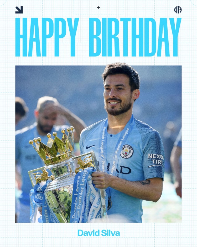曼城官方社媒晒出大卫·席尔瓦的生日海报,配文:“祝曼城传奇大卫·席尔瓦40岁生日快乐。”